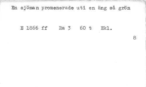//// En sjöman promenerade uti en äng så grön //// E 1866 ff Ra 3 60 t Ekl. //// 8 ////