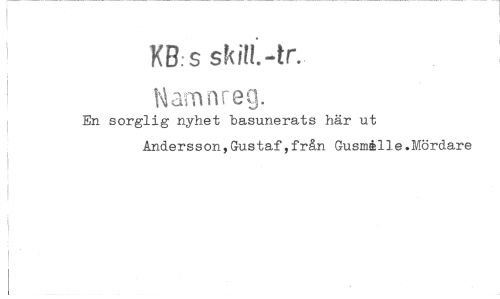 //// KB:s //// Wamnreg. //// En sorglig nyhet basunerats här ut Andersson,Gustaf,från Gusmffille.Mördare ////