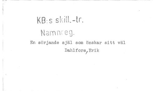 //// KB:s skilt.-tr. //// Namfv-ecj. //// En sörjande själ som önskar sitt väl Dahlfors/Erik ////
