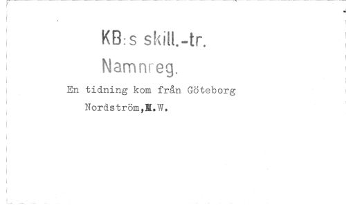 //// KB: s //// Namnreg. //// En tidning kom från Göteborg Nordström,I.W. //// r- ////