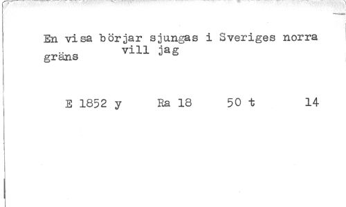 //// En visa börjar sjungas i Sveriges norra gräns vill jag //// E 1852 y Ra 18 50 t 14 ////
