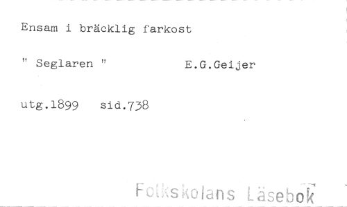 //// Ensam i bräcklig farkost //// " Seglaren " E.G.Geijer //// utg.1899 sid.738 //// _äsebok ////