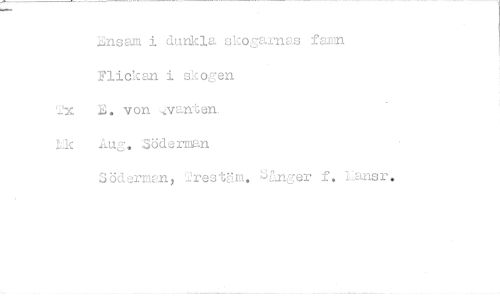 //// Ensam i dunkla skogarnas famn Flickan i skogen //// 2x• von ,vanten //// kk aug, Söderman //// Söderman, 2restäm. dnger f. Laner. ////
