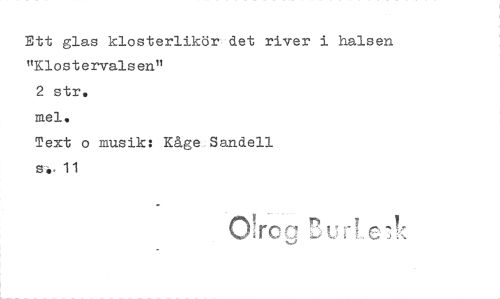 //// Ett glas klosterlikör det river i halsen "Klostervalsen" //// 2 str, //// mel. //// Text o musik: Kåge.Sandell //// s4. 11 ////