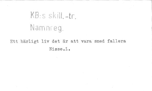//// KB:s sil. //// Namnreg. //// Ett härligt liv det är att vara smed fallera Nisse.L. ////