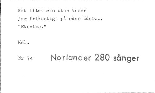 //// Ett litet eko utan knorr //// jag frikostigt på eder öder... "Ekovisa." //// Mel. //// Nr 74 Norlander 280 sånger ////