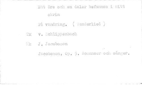 //// Utt öre och en daler befunnos i ritt skrin //// på vandring. ( ';ianderlied ) //// v. Schlippenbach //// .1.k J. Jacobsson //// Jacobsson, Op. 5. Rozanser och såner. ////
