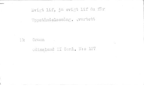//// :Lvigt lif, ja evigt lif du får //// Uppståndelsesång. vart ett //// 11.c Graun //// udinslund II Sara. N:o 107 ////