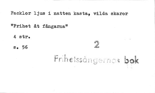 //// Facklor ljus i natten kasta, vilda skaror //// "Frihet åt fångarna" 4 str. //// s. 56 //// '5.55 å bok //// 4 k, • ////