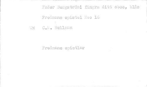 //// Fader Bergström! fingra ditt oboe, blås Fredmans epistel N:o 16 //// 2x C.L. Bellman //// Fredmans epistlar ////