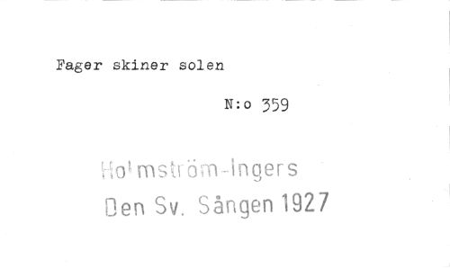 //// Fager skiner solen //// N:o 359 //// V.(V nistvöpfi-ingers //// Oen Sv. Sången 1927 ////