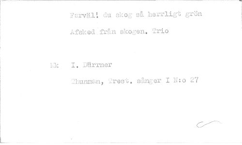 //// Farväl: du skog så herrligt grön Åfsked från skogen. Trio //// Ek 1. Dlirmer //// 2hunman, rest. sånger 1 W:o 27 ////