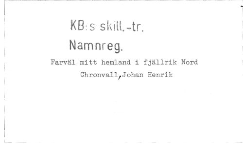//// KB:s skitt.-tr. //// Namnreg. //// Farväl mitt hemland i fjällrik Nord //// Chronvall/Johan Henrik ////