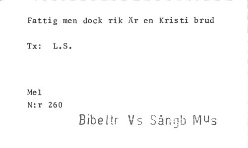 //// Fattig men dock rik Är en Kristi brud Tx: L.S. //// Mel //// N:r 260 //// Bibeltr Vs Sångb Mus ////