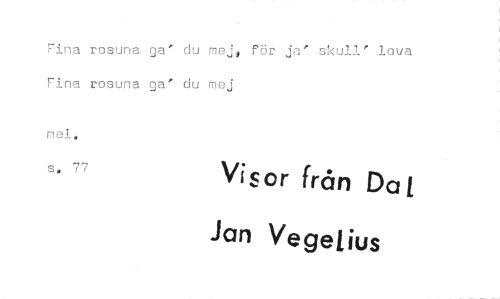 //// Fina rosuna ga' du mej, för ja' skull' lova Fina rosuna ga' du mej //// 5. 77 Visor från Dal //// Jan Vegejius ////