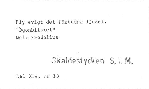 //// Fly evigt det förbudna ljuset, "Ögonblicket" //// Mel: Frodelius //// Ska(destycken S.1. M, //// Del XIV, nr 13 ////