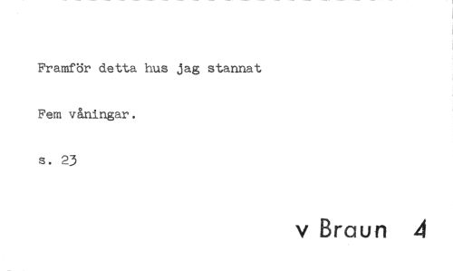 //// Framför detta hus jag stannat Fem våningar. //// s. 23 //// v Braun ////