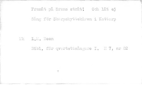 //// Fralråt på ärcns stråt; Och låt ej //// Sång för Skarpskyttekåren i Kattarp //// Lic L.M. Been //// Bibi för qvcrtettsångare 1. 11 7, nr 32 ////