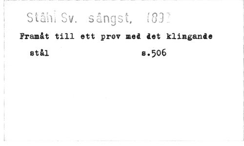 //// Ståhi Sv. s'-'nrist //// u. //// Framåt till ett prov med det klingande stål s.506 ////