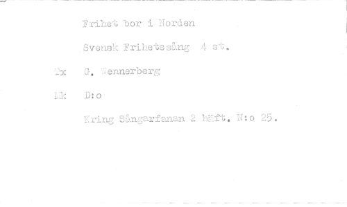 //// Frihet bor i Norden ,Svensk Frihetssång 4 st. //// 2x G. ennerberg //// Lie D:o //// rring Sångarfanan 2 inKft. No 25. ////
