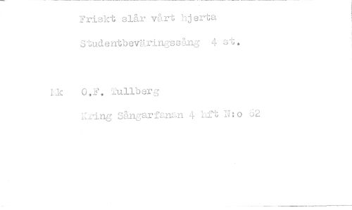 //// Friskt slår vårt hjerta Studentbeväringssäng 4 st. //// i: O.F. Tullberg //// Kring Sångarfanan 4 lift N: o 62 ////