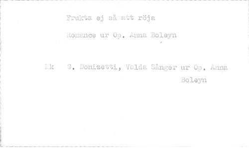 //// 'Frukta ej så at röja Lk)mallee ur Oo, Anna Boleyn //// Lk G, Donize%ti, Valda Sånger ur 0. .anna //// Boleyn ////