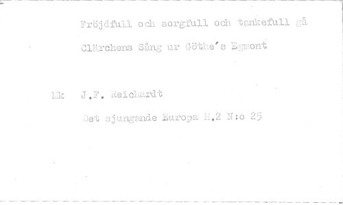 //// Fröjdfull och sorgfull och tankefull gå Clärchens Sång ur Göthe's mont //// Lik J.F. deichardt //// ))et sjungande Luropa M.2 N:o 25 ////
