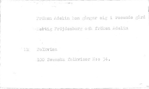 //// 'röken Adelin hon JL;.ngar sig i rosende gärd //// Fröidenborg och fröken Adelin //// ik .folkvisa //// 100 Svenska folkvisor N:o 34. ////