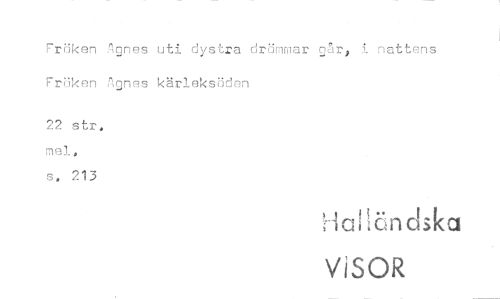 //// Fräken Agnes uti dystra drömmar gir, i nattens Fröken Agnes kärleksöden //// 22 sta'. mel. //// s. 213 //// al dsku //// ViSOR ////
