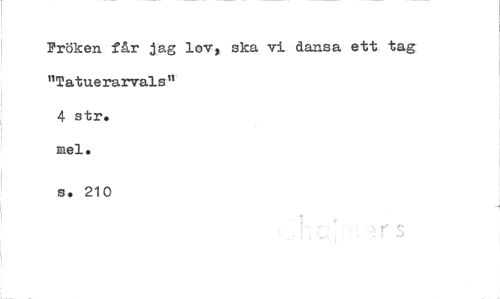 //// Fröken får jag lov, ska vi dansa ett tag "Tatuerarvals" //// 4 str. //// mel. //// s. 210 ////