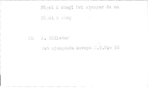 //// Fågel i skog! hvi sjunger du nu Fågel i skog //// Ik Billeter //// Jet sjungsnde :Luropa 1_5:Ap 56 ////