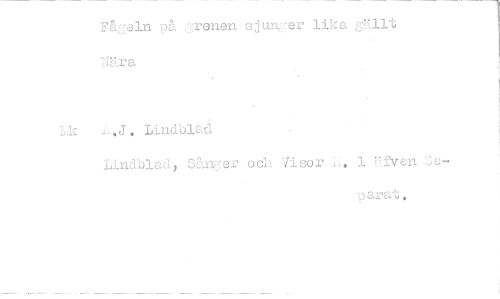 //// -Fågeln på ,s:renen sjun, ,er likagällt rara //// Lind-bitå //// ndblad, Sånger och Visor ,f.ven //// arat. ////