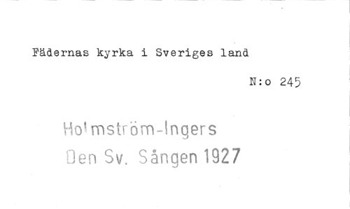 //// Fädernas kyrka i Sveriges land //// N: o 245 //// o!mströrn-Ingers //// ]en Sv. Sången 1927 ////