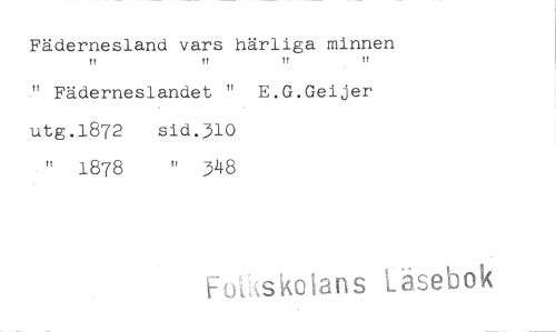 //// Fädernesland vars härliga minnen //// tt tf tt tt //// " Fäderneslandet " E.G.Geijer //// utg.1872 sid.310 //// " 1878 348 //// FoUskoians läsebok ////