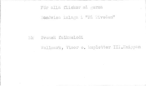 //// För alla flickor så gerna 3ondvisa inlaga i "På 2iveden" //// hk Svensk folkmelodi //// Wallwark, Visor o. kupletter III Knippan ////