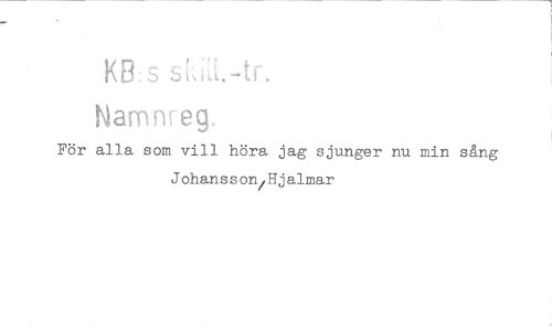 //// KB:s //// Namnreg. //// För alla som vill höra jag sjunger nu min sång Johansson Hjalmar ////