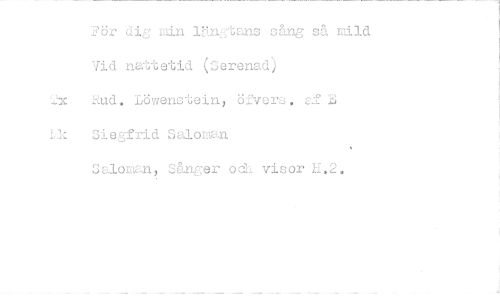 //// fJör dig min lAngtans sång så mild Vid nattetid (..5erenad) //// Löwenstein, öfvers. af Siegfrid Salom-In //// Saloman, Sånger od visor H.2. ////
