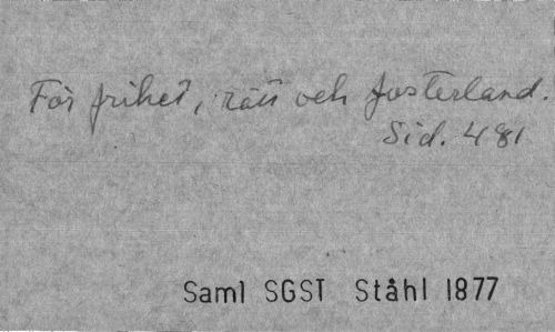 //// "exTity. //// Saml SGST Ståhl 1877 ////