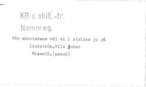 //// KR: s skilt.-tr. //// Narnnreg. //// För människans väl vi i striden ju gå Lindström,Nils Johan NisseåL.(pseud) ////