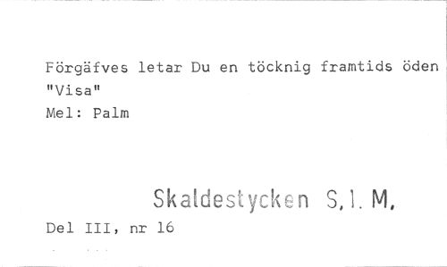 //// Förgäfves letar Du en töcknig framtids öden "Visa" //// Mel: Palm //// Skatdestycken S,1. M. //// Del III, nr 16 ////