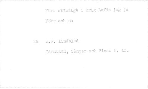 //// Förr stndigt i krig Lefde jag ju Förr och nu //// Lk Lindblad //// Lindblad, Sånger och Visor H. 10. ////