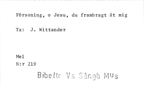 //// Försoning, o Jesu, du frambragt åt mig Tx: J. Wittander //// Mel //// N:r 219 //// Bibe(tr Vs Sångb Mus ////