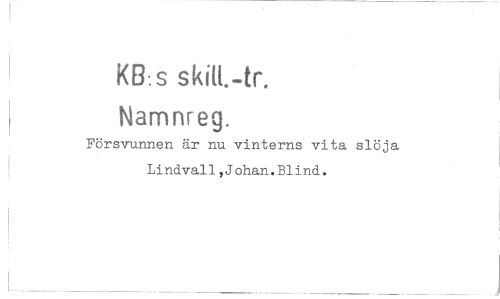 //// KB:s skal-tr. //// Namnreg. //// Försvunnen är nu vinterns vita slöja //// Lindvall,Johan.Blind. ////