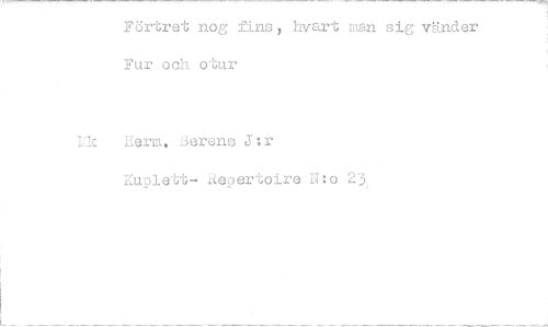 //// Förtret nog fins, hvart man sig vänder Fur och otur //// 1;:k Herm, Berens J:r //// Kuplett- liepertoire No 23, ////