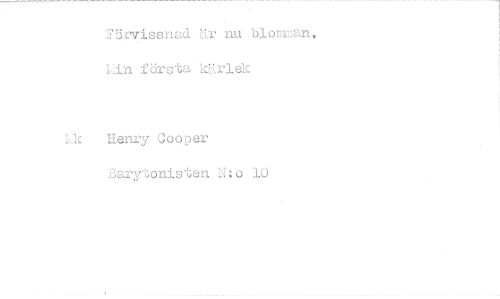 //// 23rvissnad är nu blomman, lin första krlek //// lk Henry Cooper Barytonisten N:o 10 ////