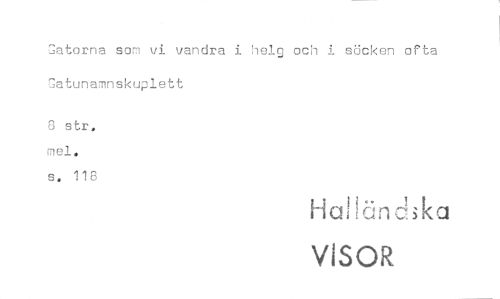 //// Gatorna som vi vandra i helg och i söcken ofta Gatunamnskuplett //// 8 str, mel, //// sa 118 //// Hal!änd3ka //// VISOR ////