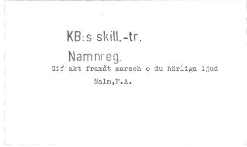 //// KB:s stritt.-tr. //// Namnreg. //// Gif akt framåt marsch o du härliga ljud Malm,F.A. ////