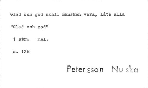 //// 3 //// Glad och god skall mänskan vara, låta alla. "Glad och god" //// 1 str. mel. //// s. 126 //// Peter sson ////