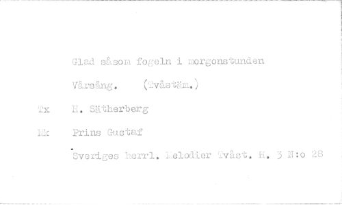 //// Glad såsom fogeln i morgonstunden Vårsång. (2våstäm. //// 2x H. Sätherberg //// Lk Prins Gustaf //// *Sveriges herrl. Ielodier 2våst.h 3 U:o 28 ////