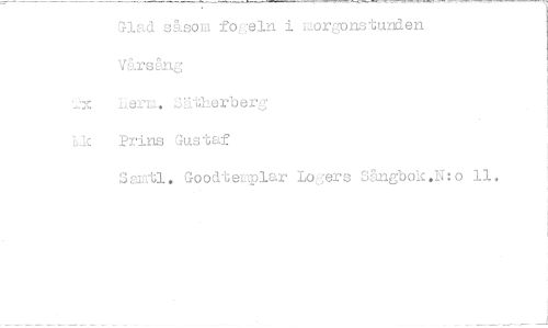 //// Glad såsom fogeln i morgonstunden //// Vårsång //// 2x herm. VAtherberg //// islc Prins Gustaf //// Sartl. Goodtexplar Lojers Sångbok.N:o 11. ////